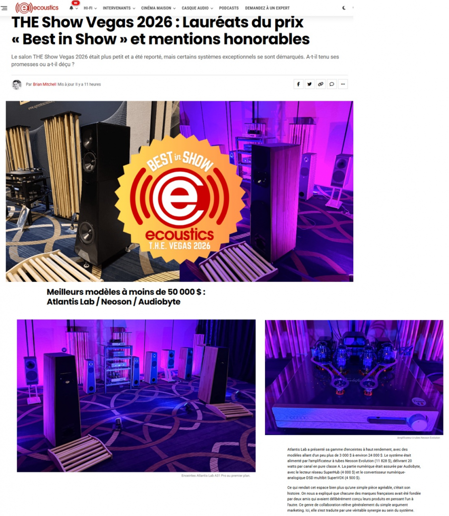 Ecoustics : Neoson / Atlantis Lab élu meilleur système à moins de 50 000$